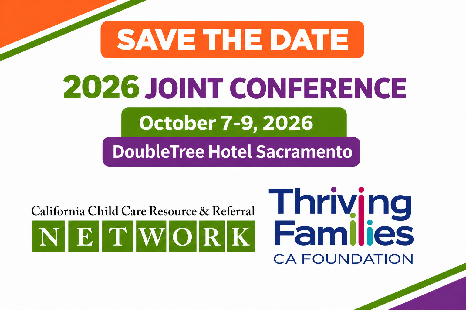 Thriving Families CA Foundation and the California Child Care Resource & Referral Network are excited to announce the 2026 Joint Annual Conference!